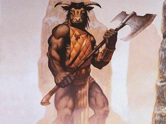 El Minotauro, era un monstruo con cuerpo de hombre y cabeza de toro. El mito tiene su versión más completa en la Biblioteca mitológica de Apolodoro.1 Su nombre significa "Toro de Minos", y era hijo de Pasífae y el Toro de Creta. Fue encerrado en un laberinto diseñado por el artesano Dédalo, hecho expresamente para retenerlo,2 ubicado probablemente en la ciudad de Cnosos en la isla de Creta. Por muchos años, hombres y mujeres eran llevados al laberinto como sacrificio para ser el alimento de la bestia hasta que la vida de ésta terminó a manos del héroe Teseo.